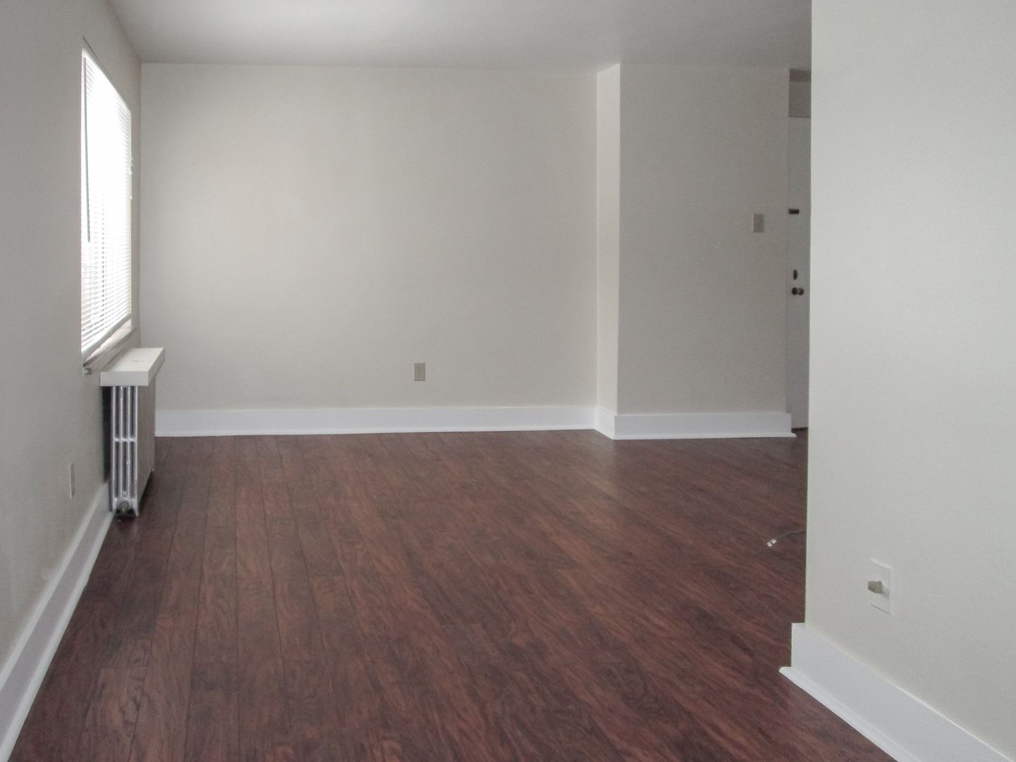 • Pergo®-brand laminate floors in living room and dining room. Wall-to-wall carpeting in bedrooms.