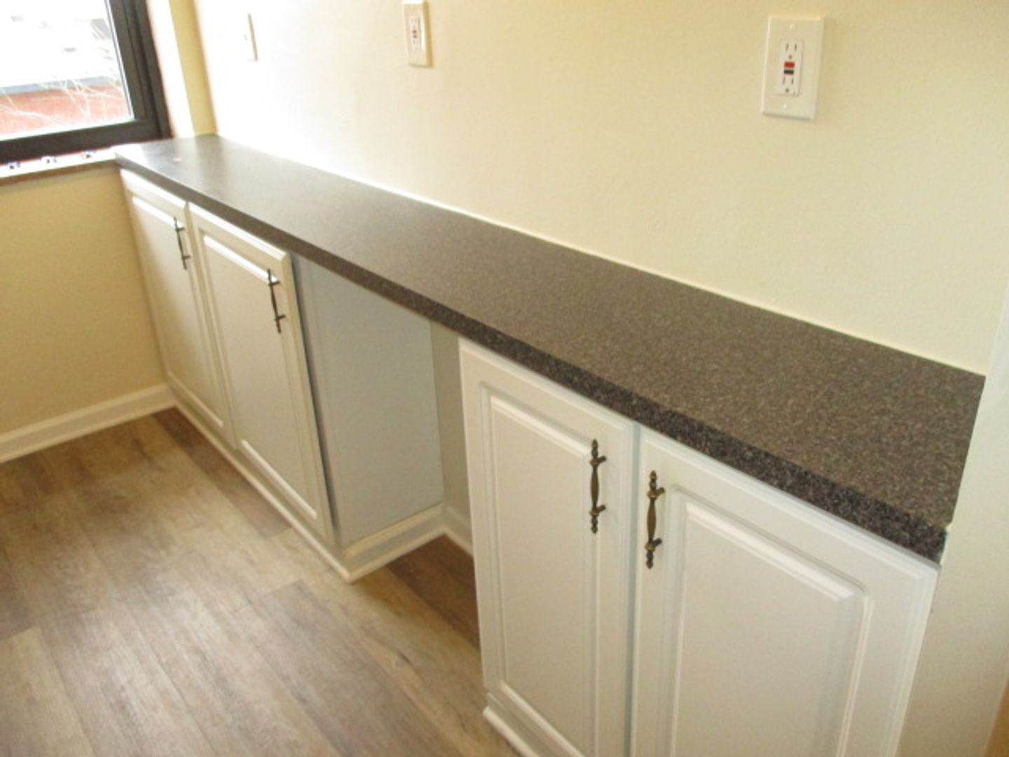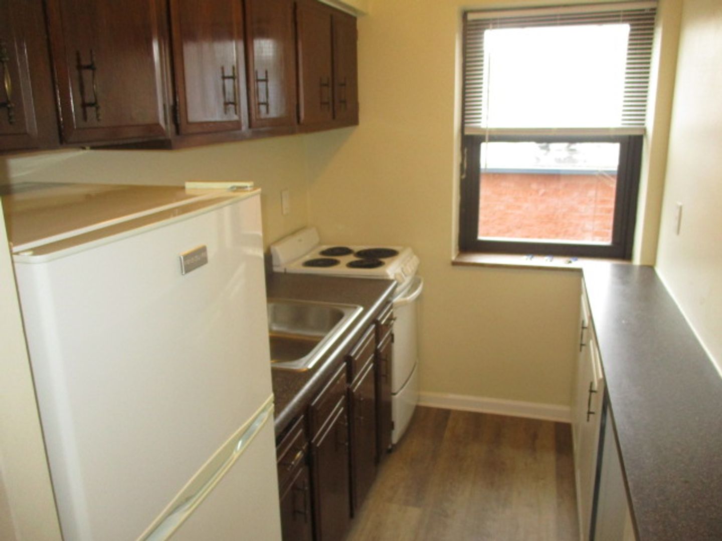 * Vinyl flooring in the kitchen and dining area.