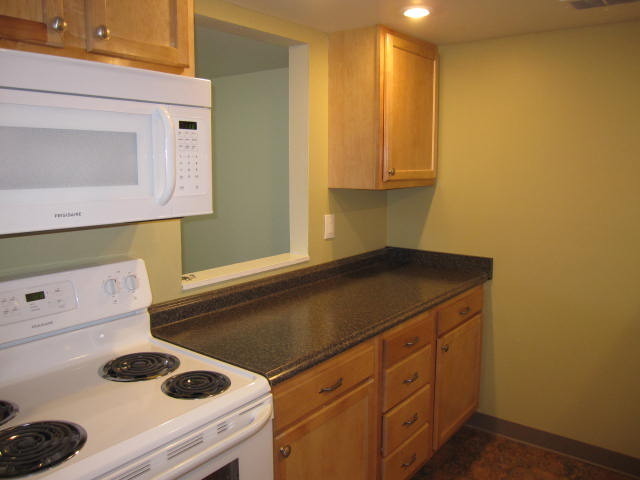 * Kitchen with maple cabinets, dishwasher, built-in microwave, full size stove, and fridge. Pass-through great for entertaining!