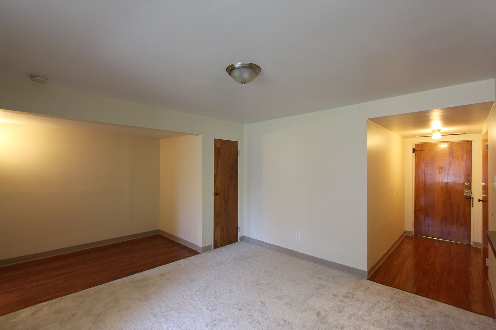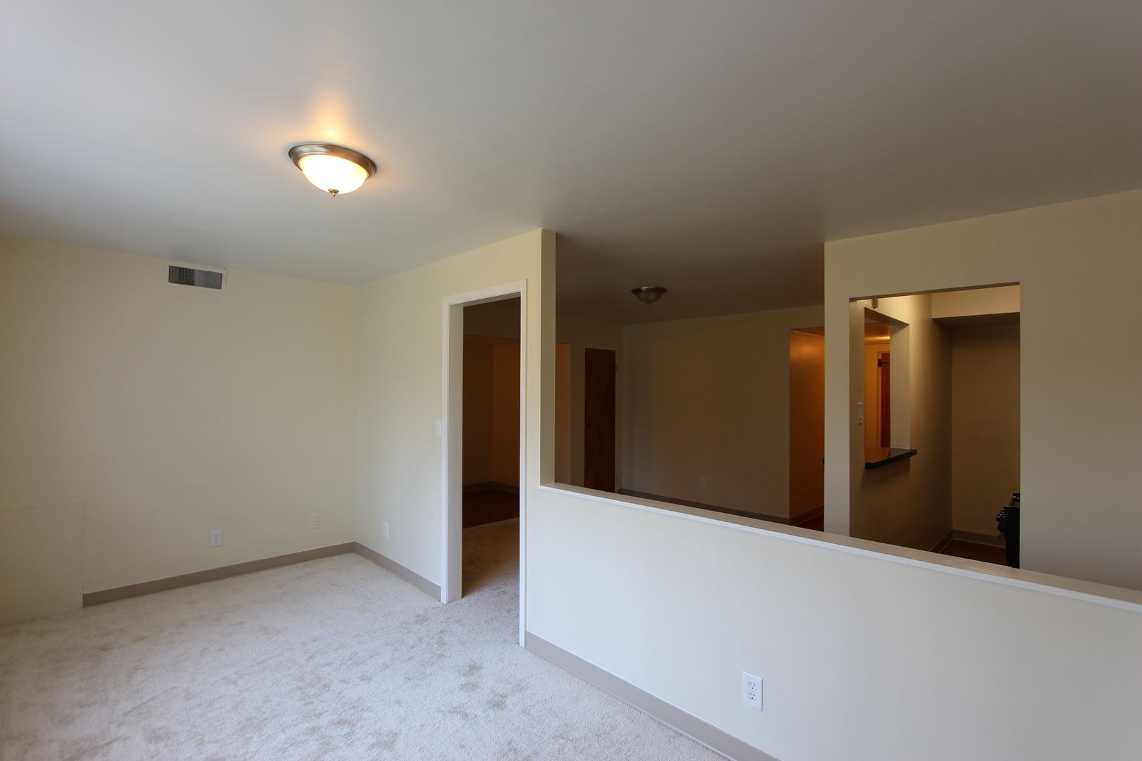 • Carpet in living area and vinyl flooring in kitchen.