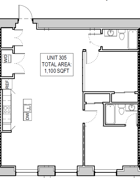-2-bedroom, 2-bath loft-style layout