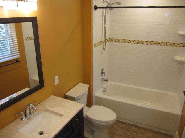 -Updated bathroom with mosaic tile shower