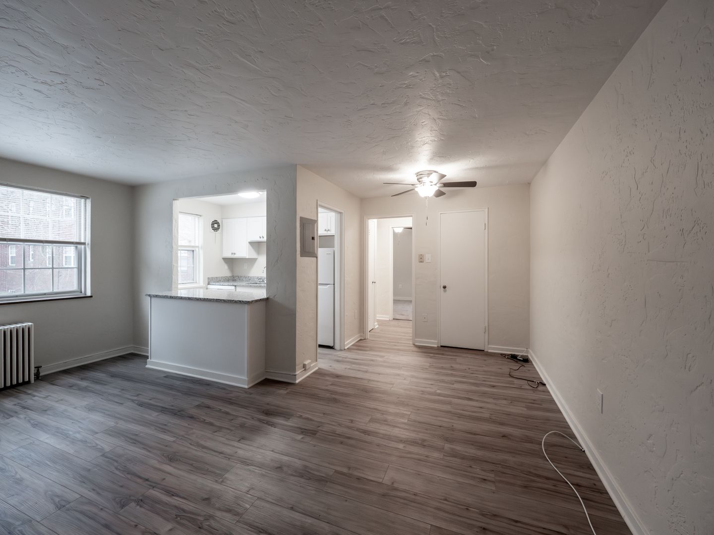 - Granite pass-thru bar from kitchen to living room.
