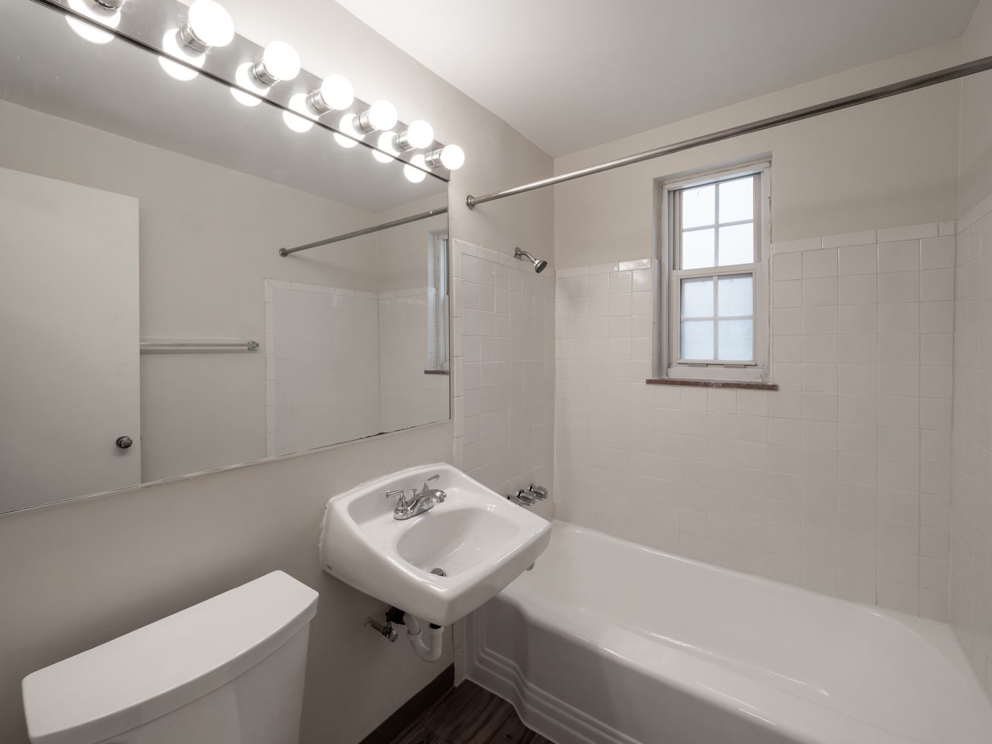 - Vinyl flooring in the kitchen, living room, and bathroom.