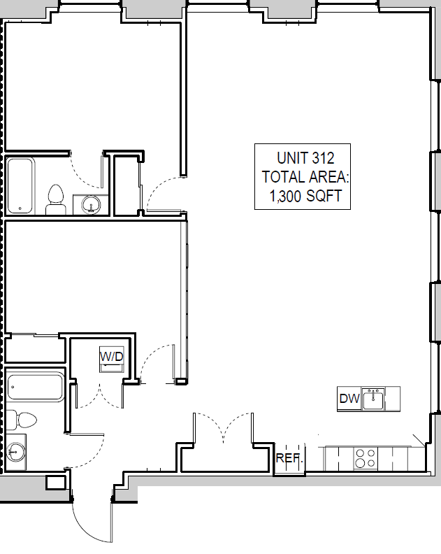 - Modern open floor plan - - 1300 sq feet! - Living/Dining/Kitchen area - Kitchen Island is perfect for entertaining!