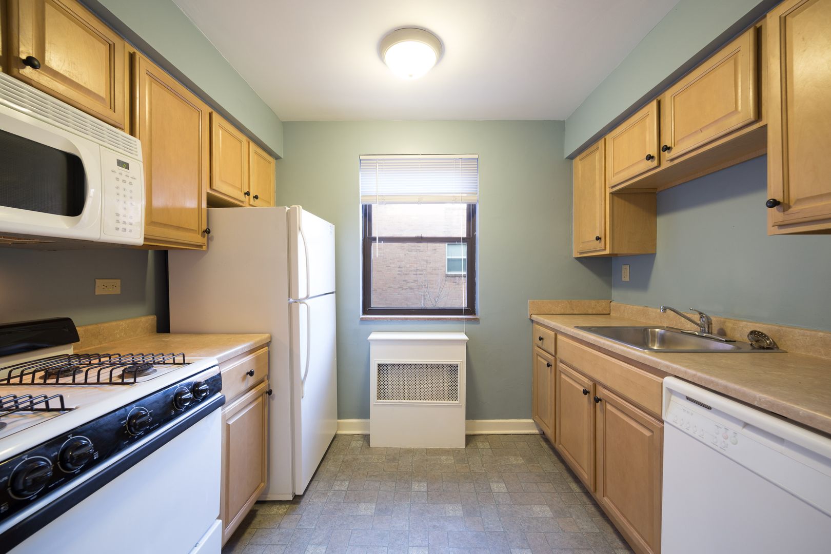 -Updated kitchen with maple cabinets, Formica countertops, dishwasher, and built-in microwave