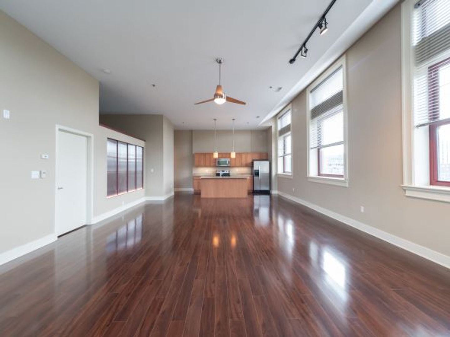 -Rich laminate flooring and exposed steel beams