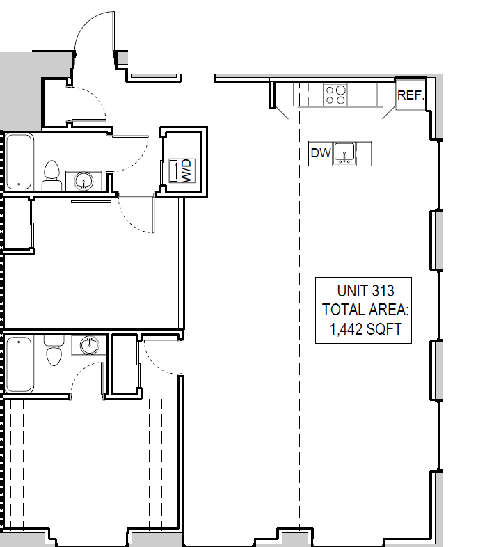 -Approximately 1,300 sq. ft. corner-unit layout