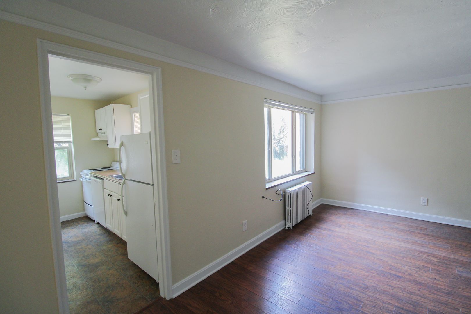 * Parquet hardwood floors in living/dining room. Wall-to-wall carpeting bedrooms