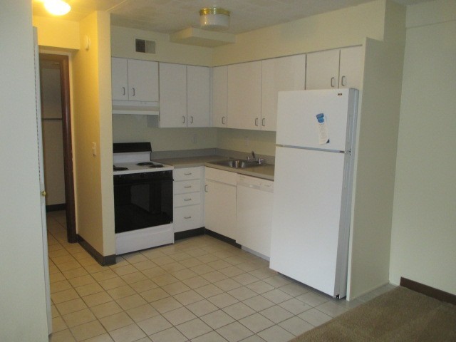 - Kitchen has lots of countertop/cabinet space and a dishwasher.
