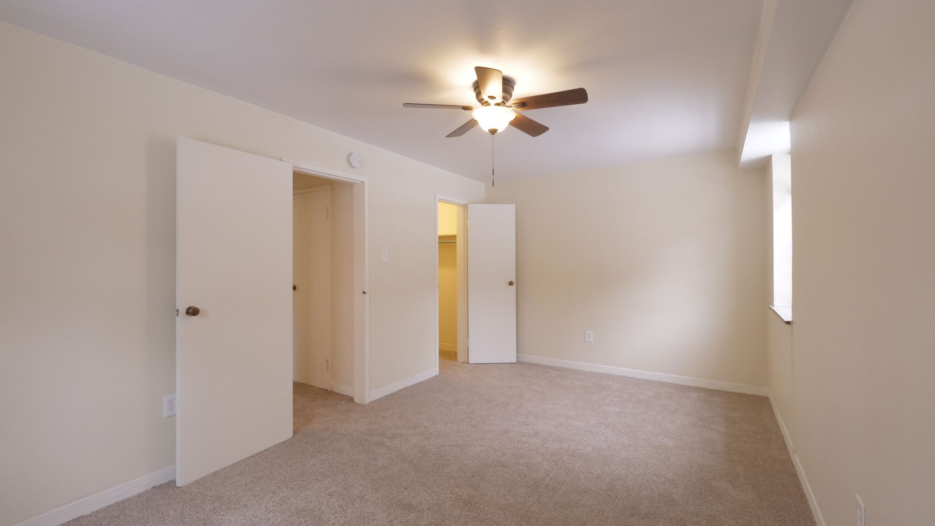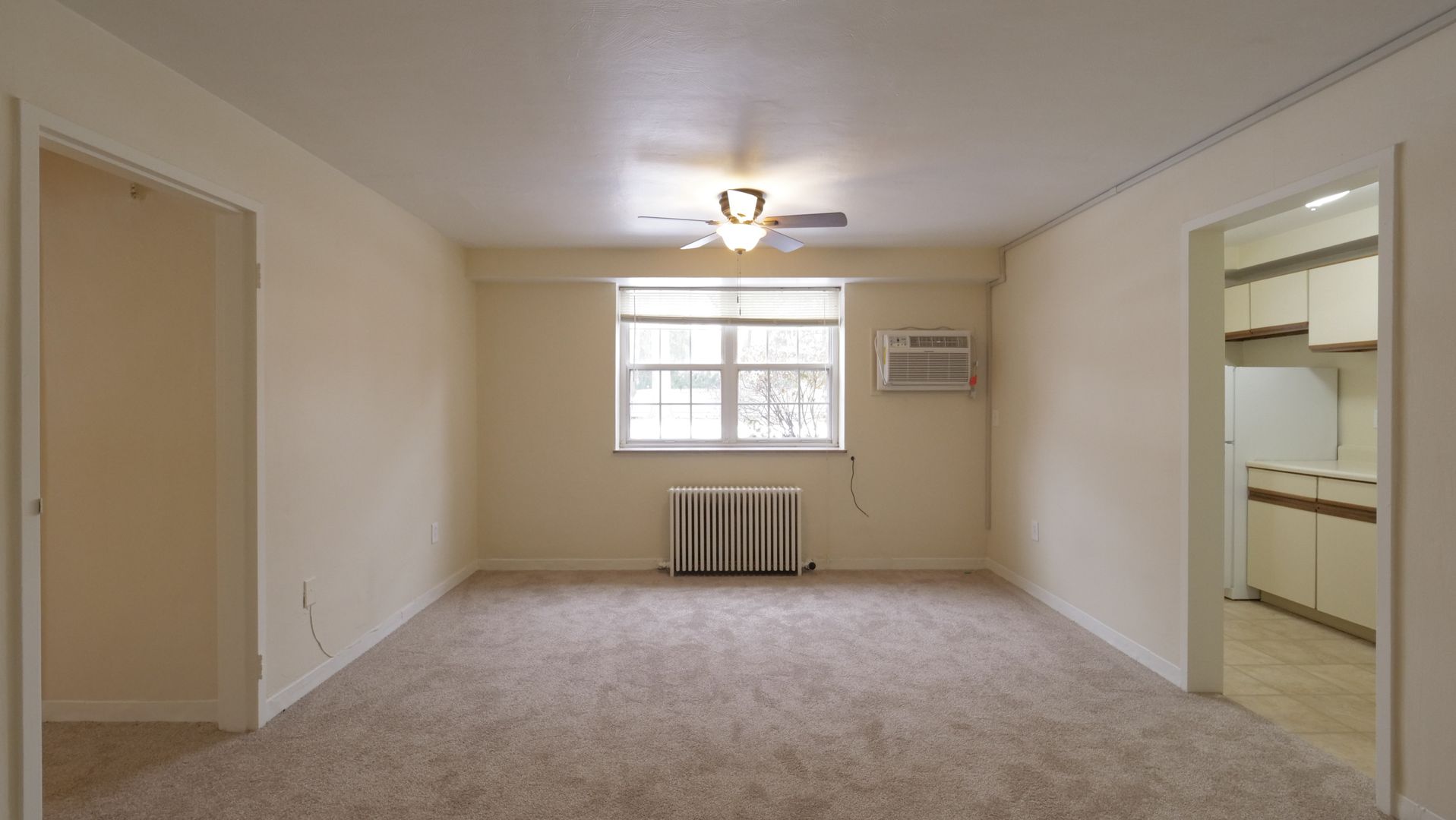- In-wall air conditioning in living room, ceiling fans in living room and bedroom.